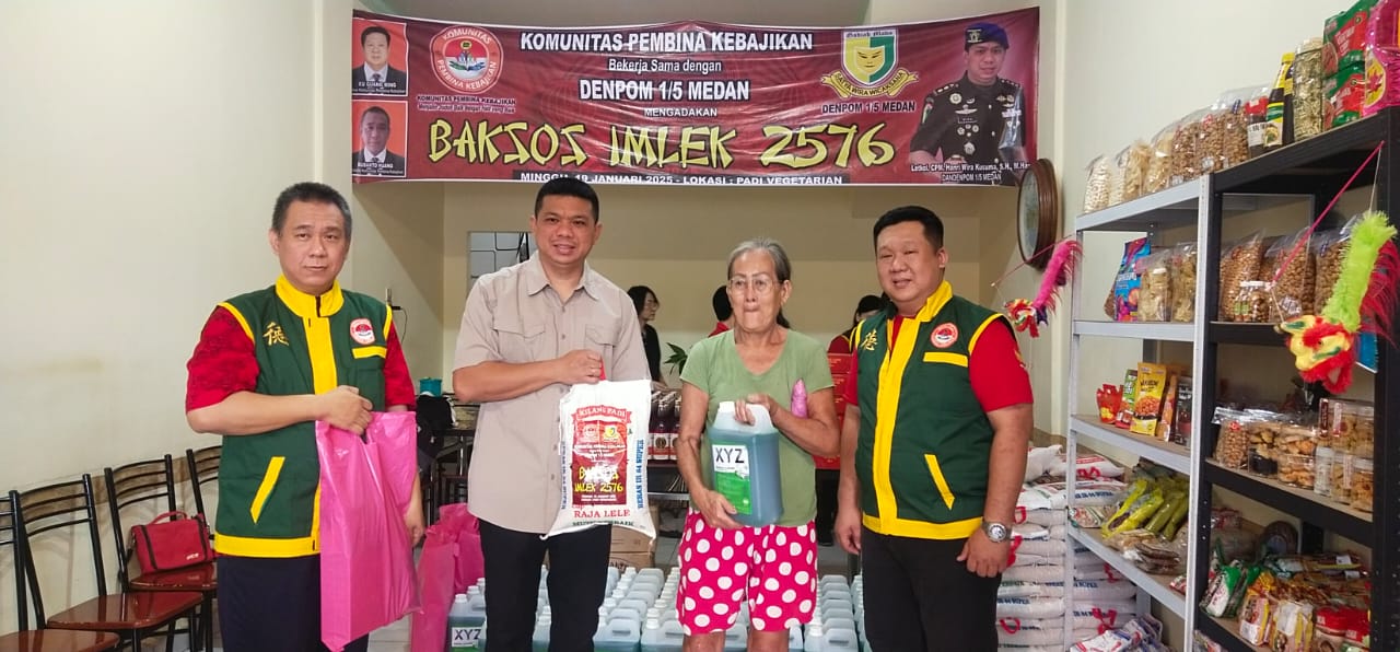 Komunitas Pembina Kebajikan bersama Detasemen Polisi Militer (Denpom) 1/5 Medan menggelar bakti sosial dalam rangka perayaan Imlek 2576 dilaksanakan di Padi Vegetarian, Medan,Minggu (19/01/2025)