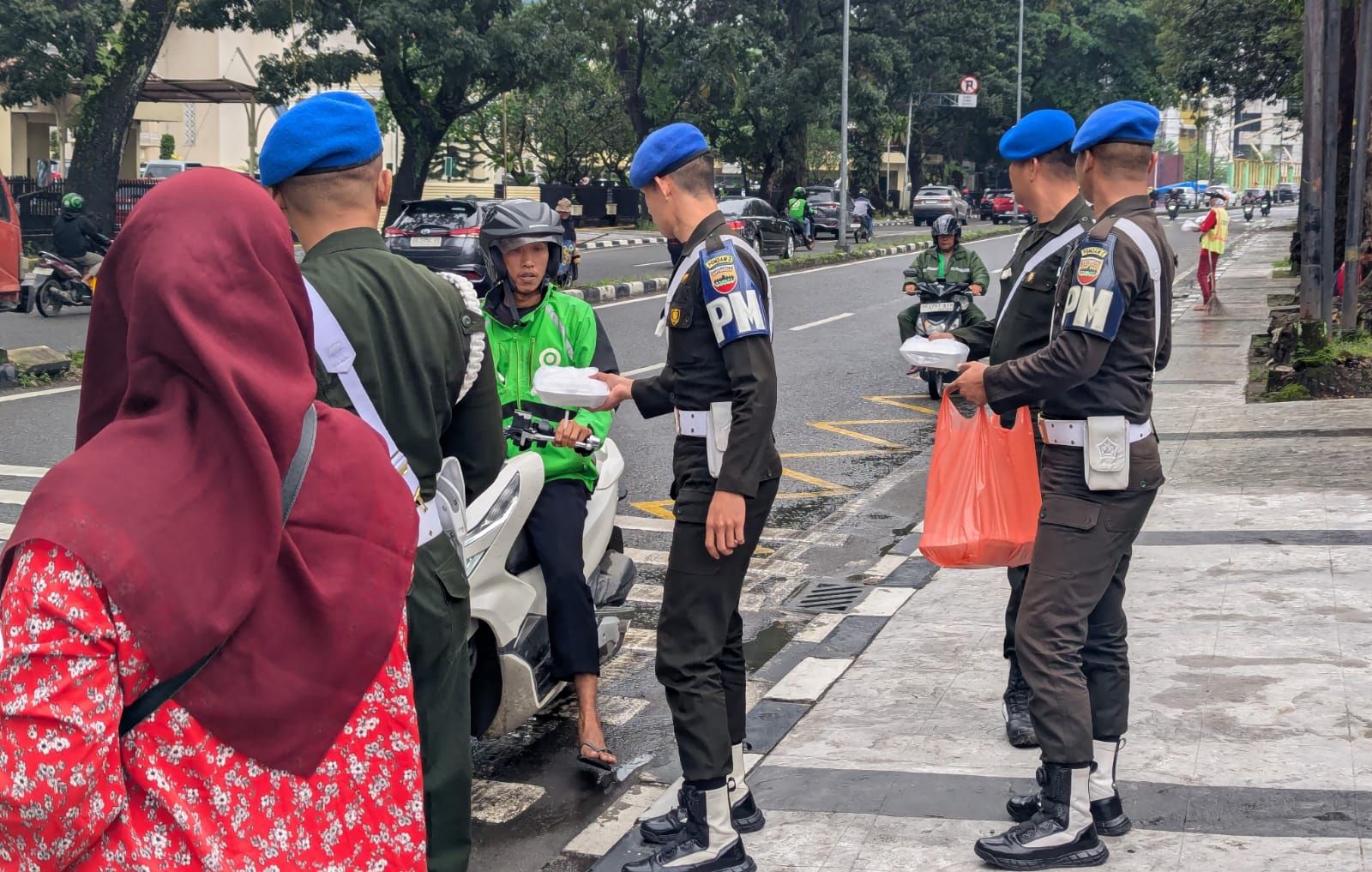 Jumat (10/01/2025), di depan Markas Denpom I/5 Medan Jalan Letjen Suprapto Medan kegiatan sosial Jumat Berkah, petugas dan ibu Persit KCK membagikan makanan dan mendapat sambutan antusias dari warga.
