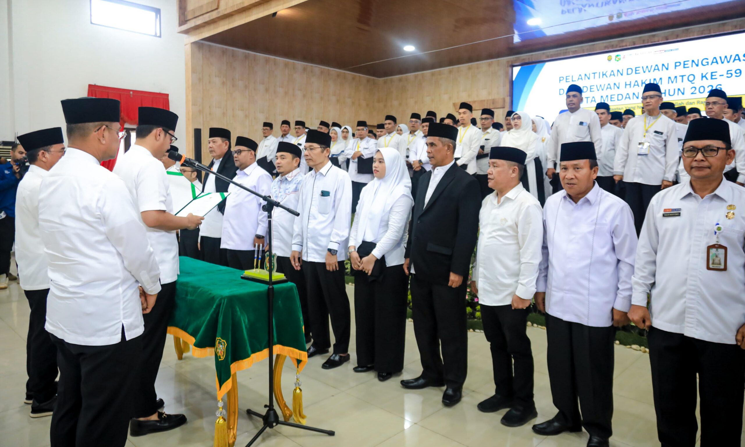 Wali Kota Medan Rico Waas pelantikan Dewan Pengawas dan Dewan Hakim MTQ Ke 59 Kota Medan di Gedung Serbaguna PKK Jalan Rotan Petisah,Jumat (10/4/2026).