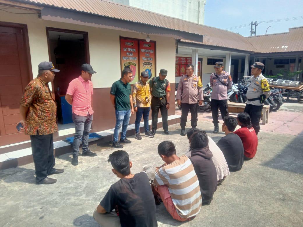 Para pengatur lalu lintas ilegal diamankan di Mapolsek Medan Tembung.(Foto : Istimewa)
