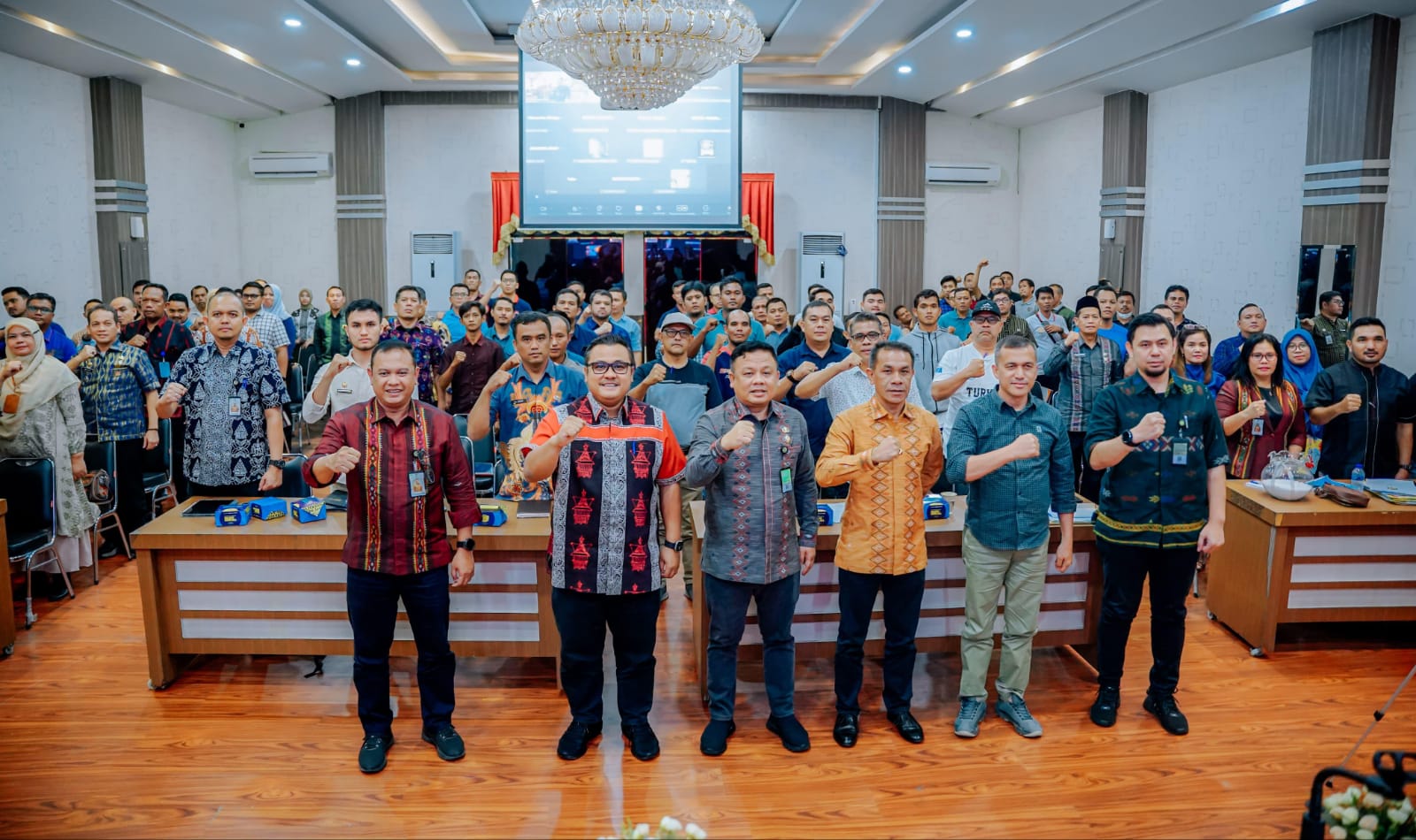 Pj.Sekda Medan Topan Ginting saat menghadiri technical meeting Turnamen Sepak Bola KORPRI 2024 di Balai Kota.(Foto : Kominfomdn)