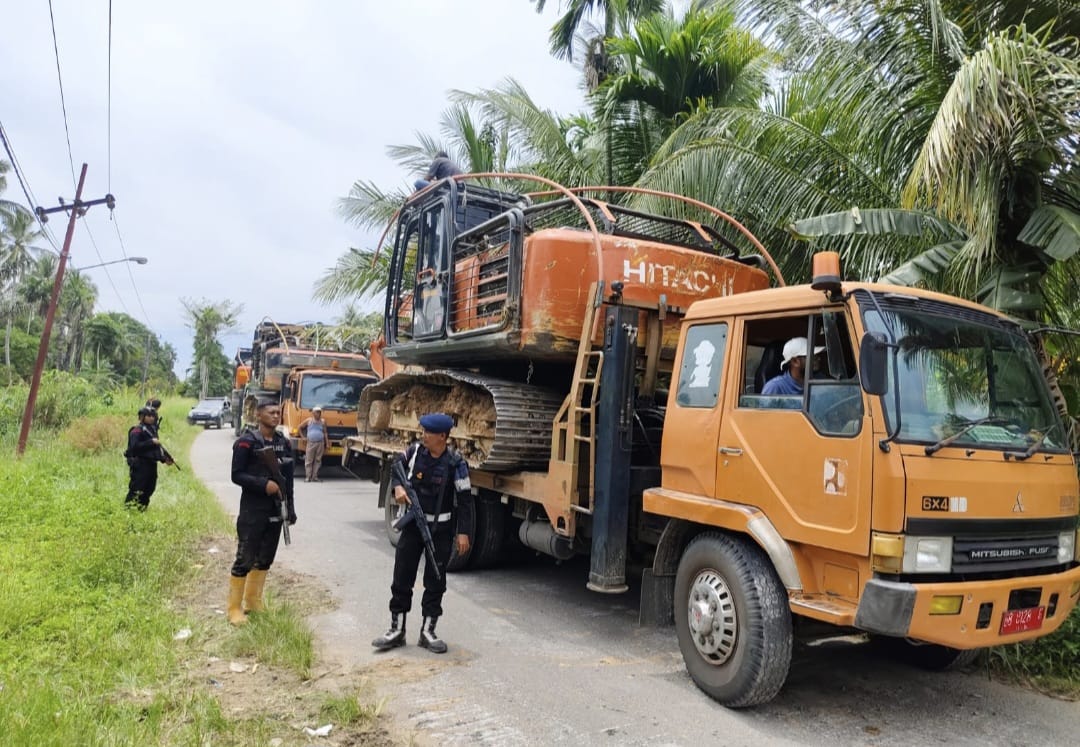 Ia menjelaskan, setiap alat berat yang dibawa ke Batalyon C Brimob Sipirok dikawal personel bersenjata lengkap. Untuk setiap empat unit ekskavator, pengawalan dilakukan oleh 90 hingga 150 personel atau setara tiga pleton.