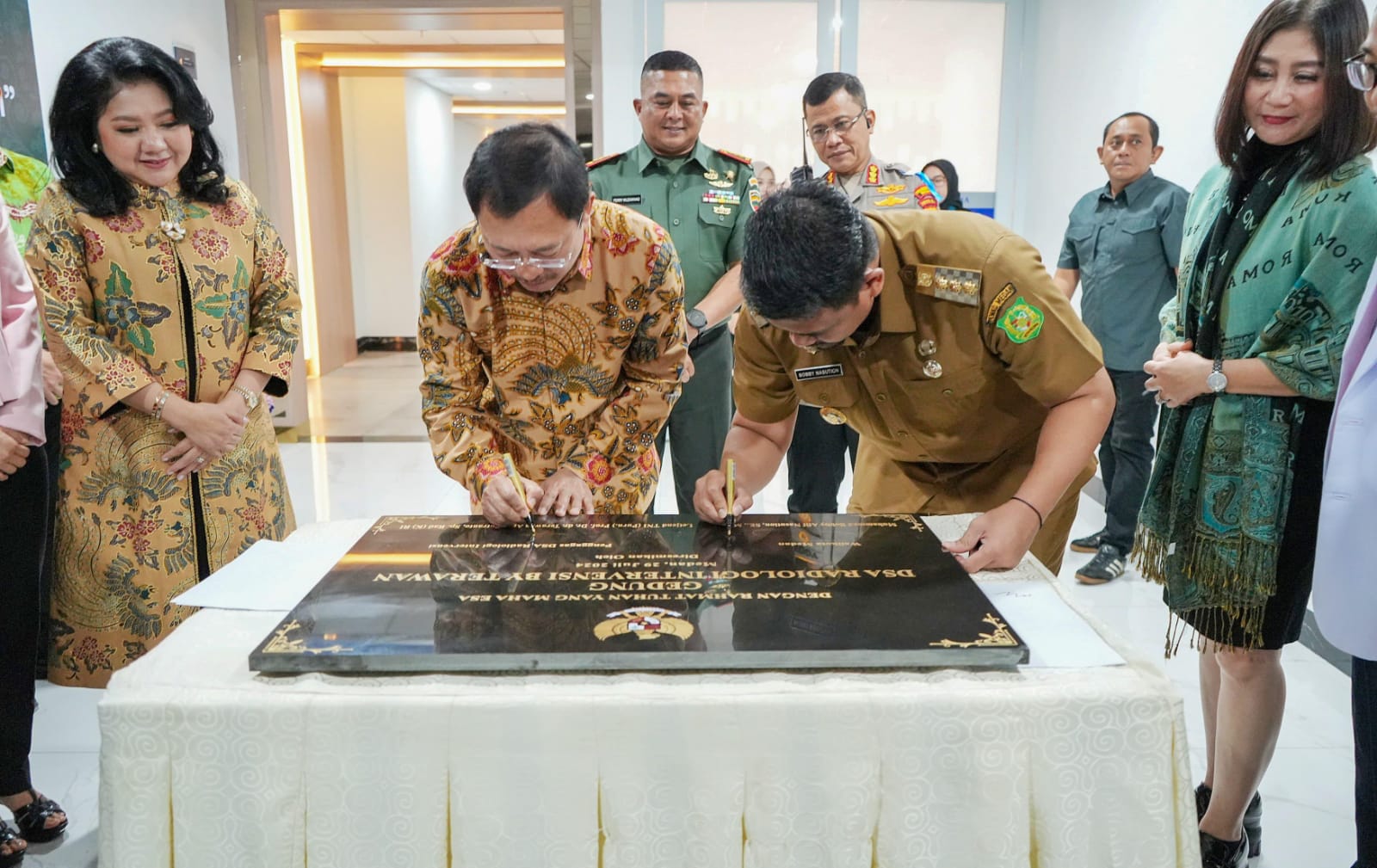 Wali Kota Bobby Nasution dan dr.Terawan menandatangani prasasti peresmian DSA Radiologi Intervensi by Terawan.(Foto : Kominfomdn)