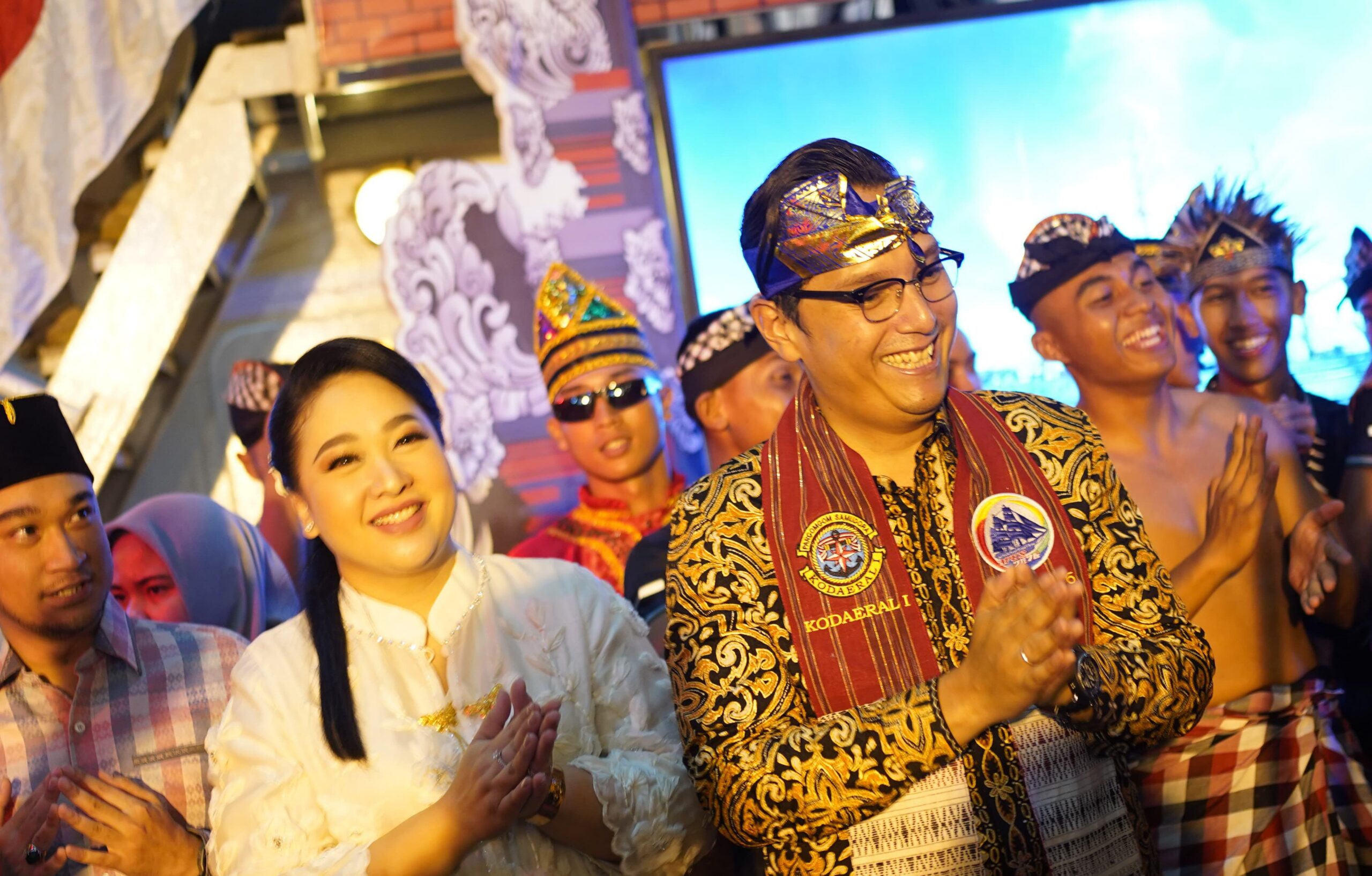 Keberagaman budaya Nusantara begitu terasa dalam gelaran Deck Reception ASEAN Plus Cadet Sail 2026 yang dihadiri Wali Kota Medan Rico Tri Putra Bayu Waas bersama Ketua TP PKK Kota Medan Airin Rico Waas diatas geladak Kapal KRI Bima Suci yang bersandar di Dermaga Pelindo 104, Pelabuhan Belawan, Senin (6/4/2026).