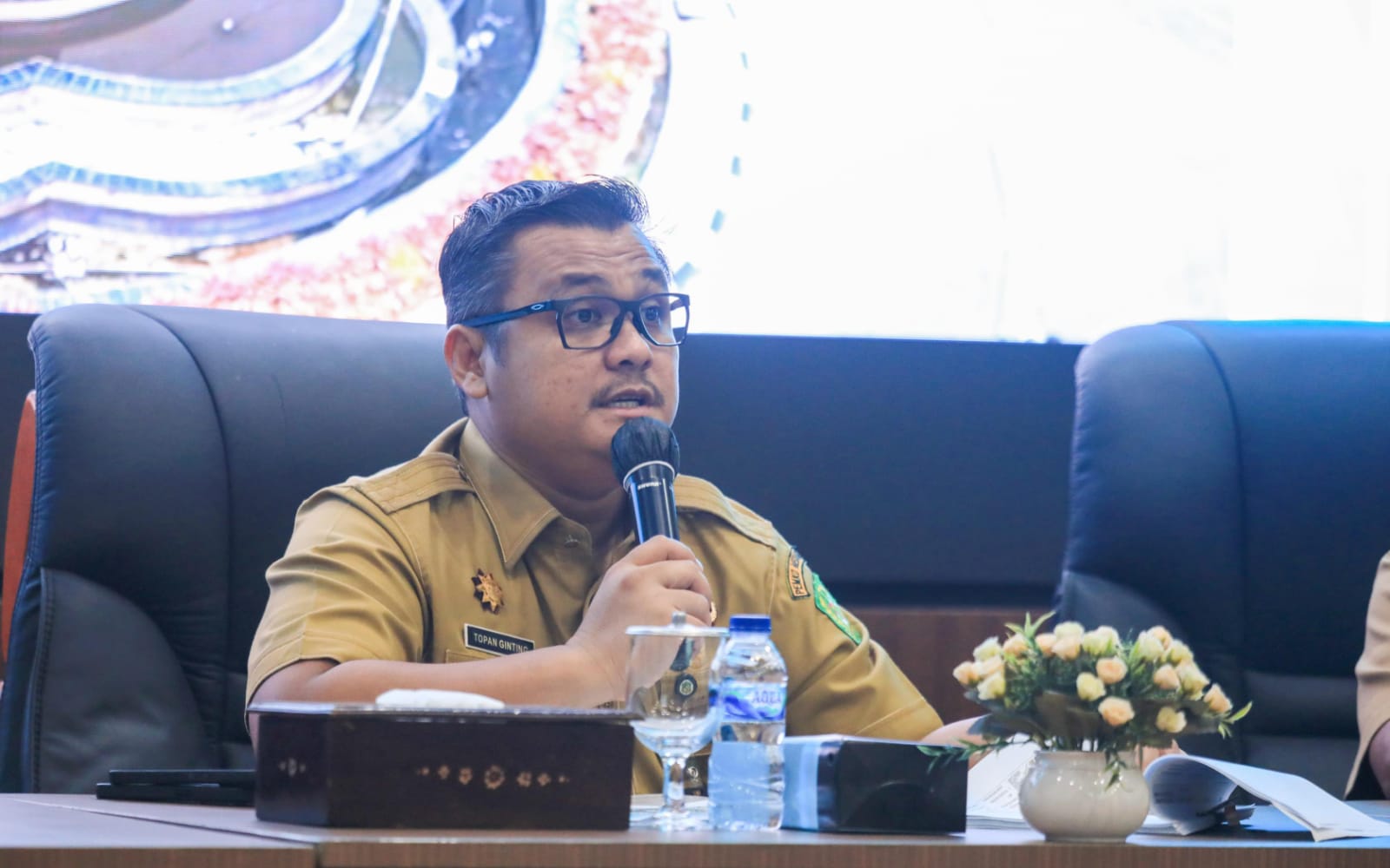 Pj.Sekda Medan Topan Ginting saat memimpin Rapat Persiapan Penilaian Adipura Kota Medan Tahun 2024 yang di Kantor Wali Kota Medan, Senin (29/7/2024).