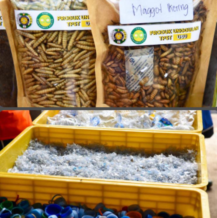Hari itu, suasana di sebuah bangunan dekat Pintu IV Kampus Universitas Sumatera Utara (USU) terasa berbeda. Bangunan sebelumnya hanya menjadi tempat penumpukan barang-barang tak terpakai, kini menjelma rapi dan diramaikan dengan mesin-mesin pengolah sampah dan wadah pembiakan maggot.