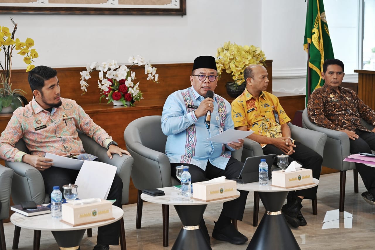 Kepala Dinas PMD Capil Sumit Parlindungan Pane memaparkan program pemberdayaan desa pada konferensi pers di kantor Gubernur.(Foto : Istimewa)
