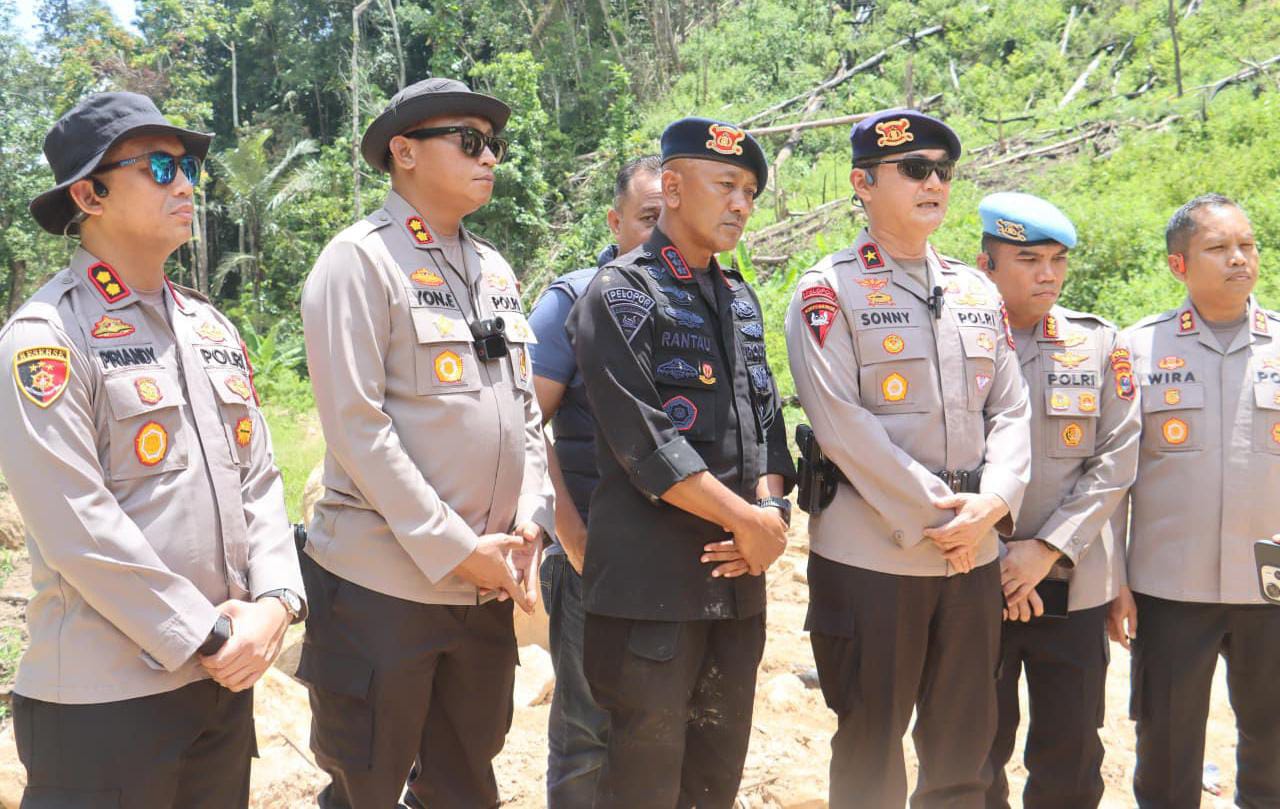 Wakapolda Sumut Brigjen Pol.Sonny Irawan (tiga dari kanan) saat memimpin personel dalam penindakan tambang emas ilegal di wilayah Tapanuli Selatan dan Mandailing Natal.(Foto : Istimewa)