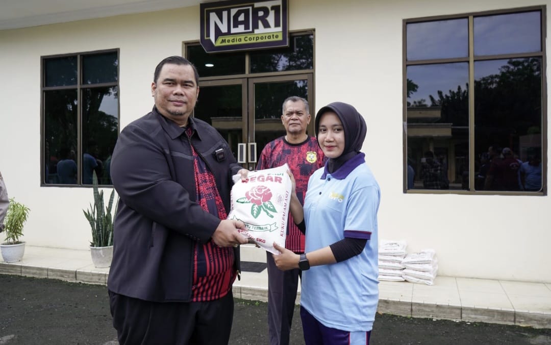 Manajemen PS PTPN III menyerahakan sembako kepada warga kurang mampu.(Foto : Istimewa)