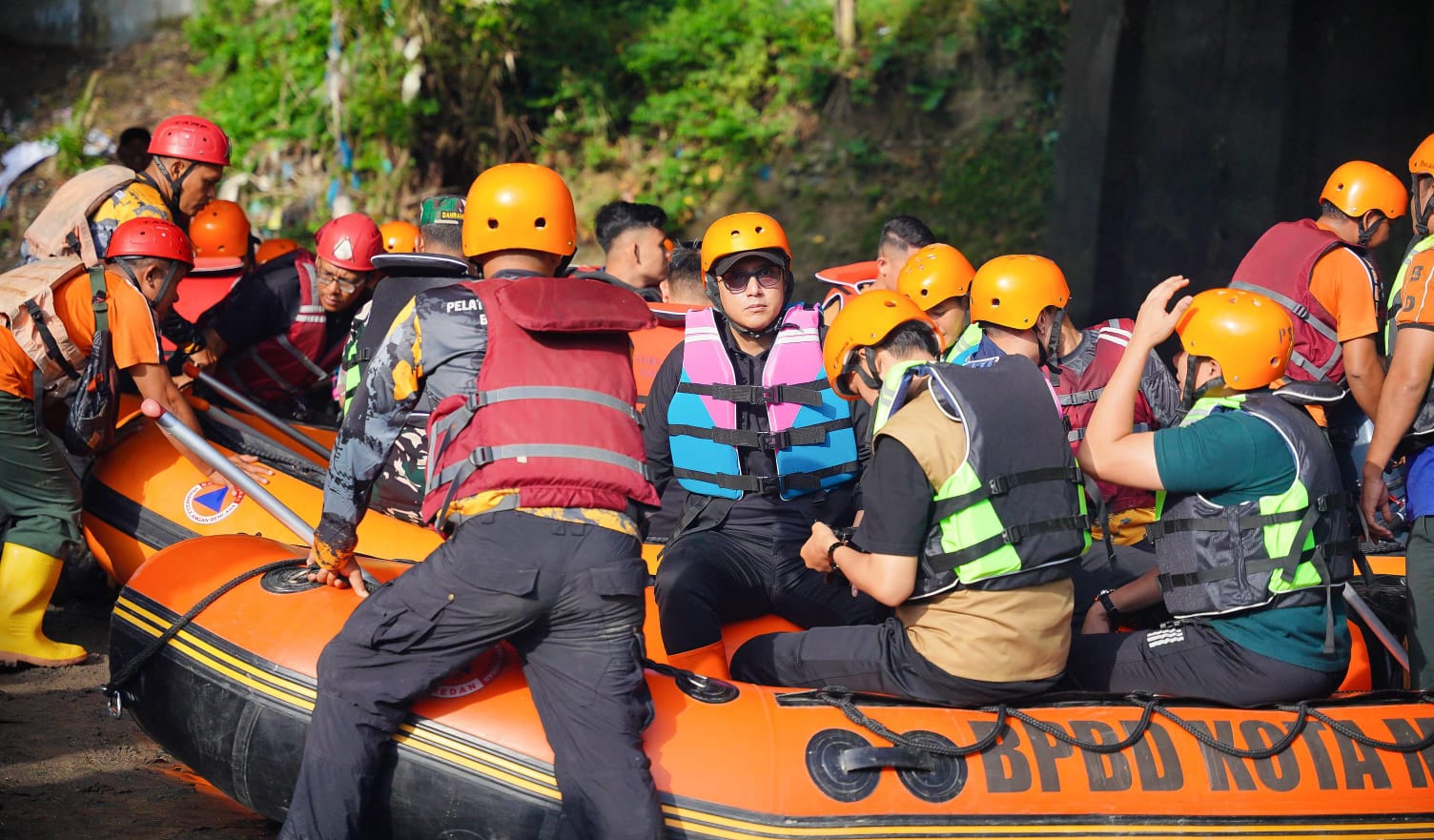 Rico meninjau gotong royong dengan menggunakan perahu karet untuk melihat langsung kondisi sungai sekaligus memastikan titik-titik berpotensi menimbulkan persoalan terutama pasca banjir melanda beberapa waktu lalu.