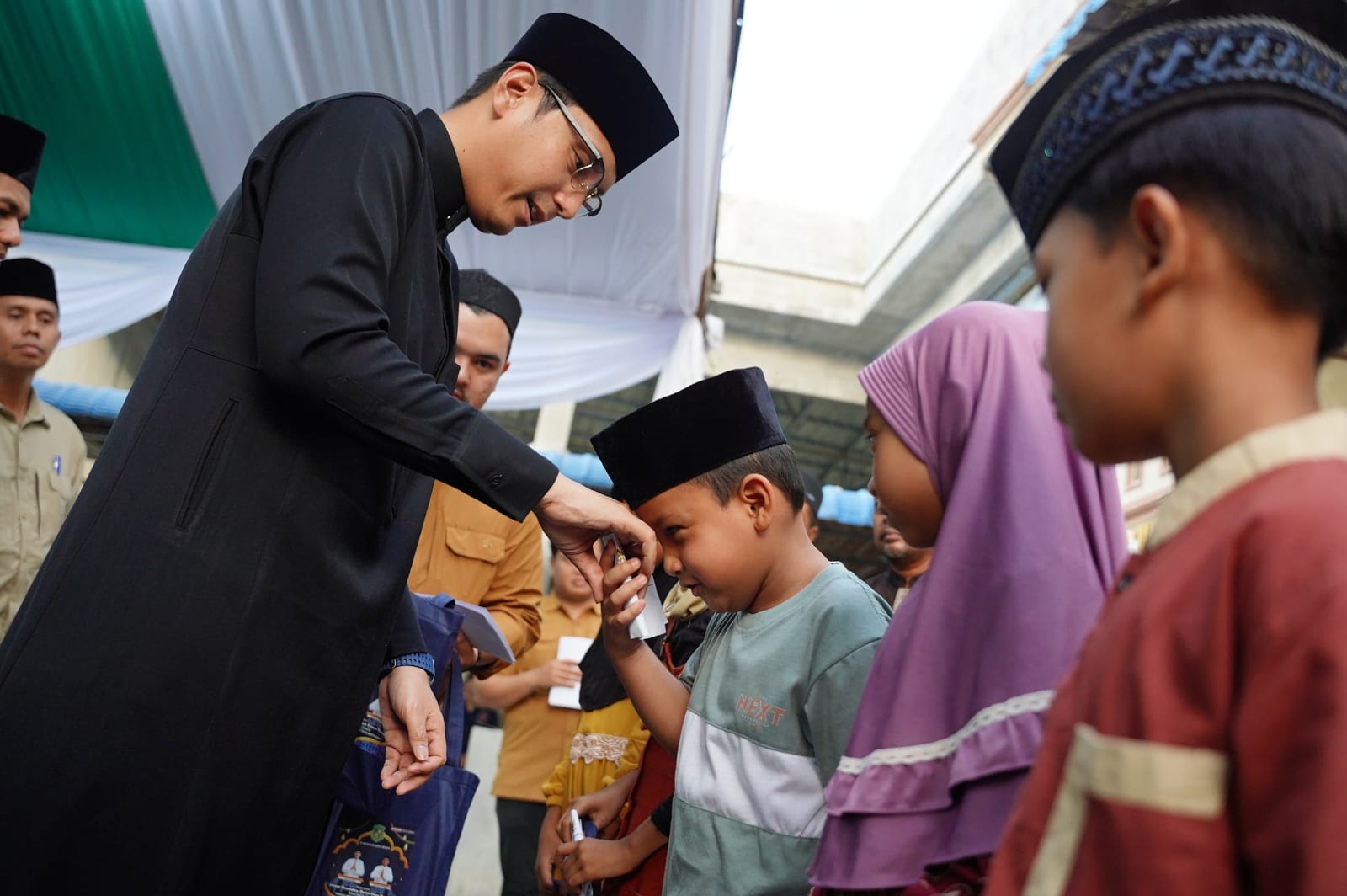 Wali Kota Medan Rico Waaa menyerahkan santunan kepada anak yatim saat Safari Ramadhan di Masjid Al Huda Medan Labuhan.(Foto : Kominfomdn)