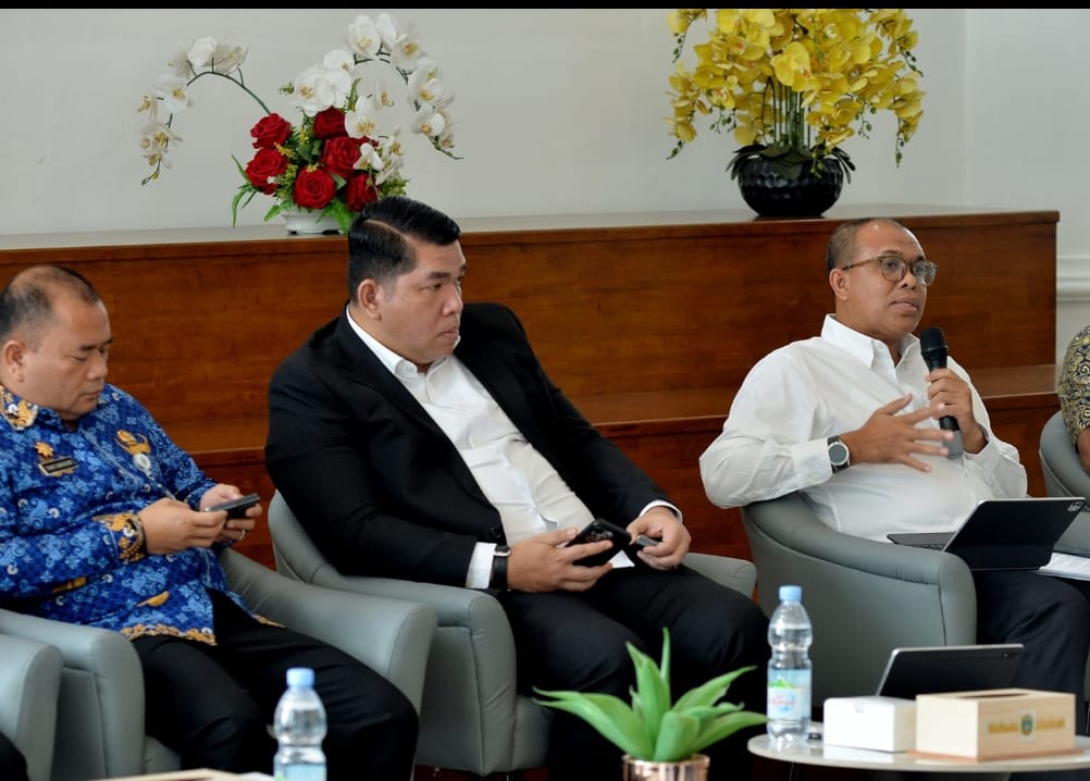 Kepala Dinas Kesehatan Sumut Faisal Hasrimi memberi penjelasan tentang pelaksanaan UHC di Sumut dalam mewujudkan pelayanan kesehatan prima pada Konferensi Pers di Anjungan Dekranasda Kantor Gubernur Sumut.(Foto : Istimewa)