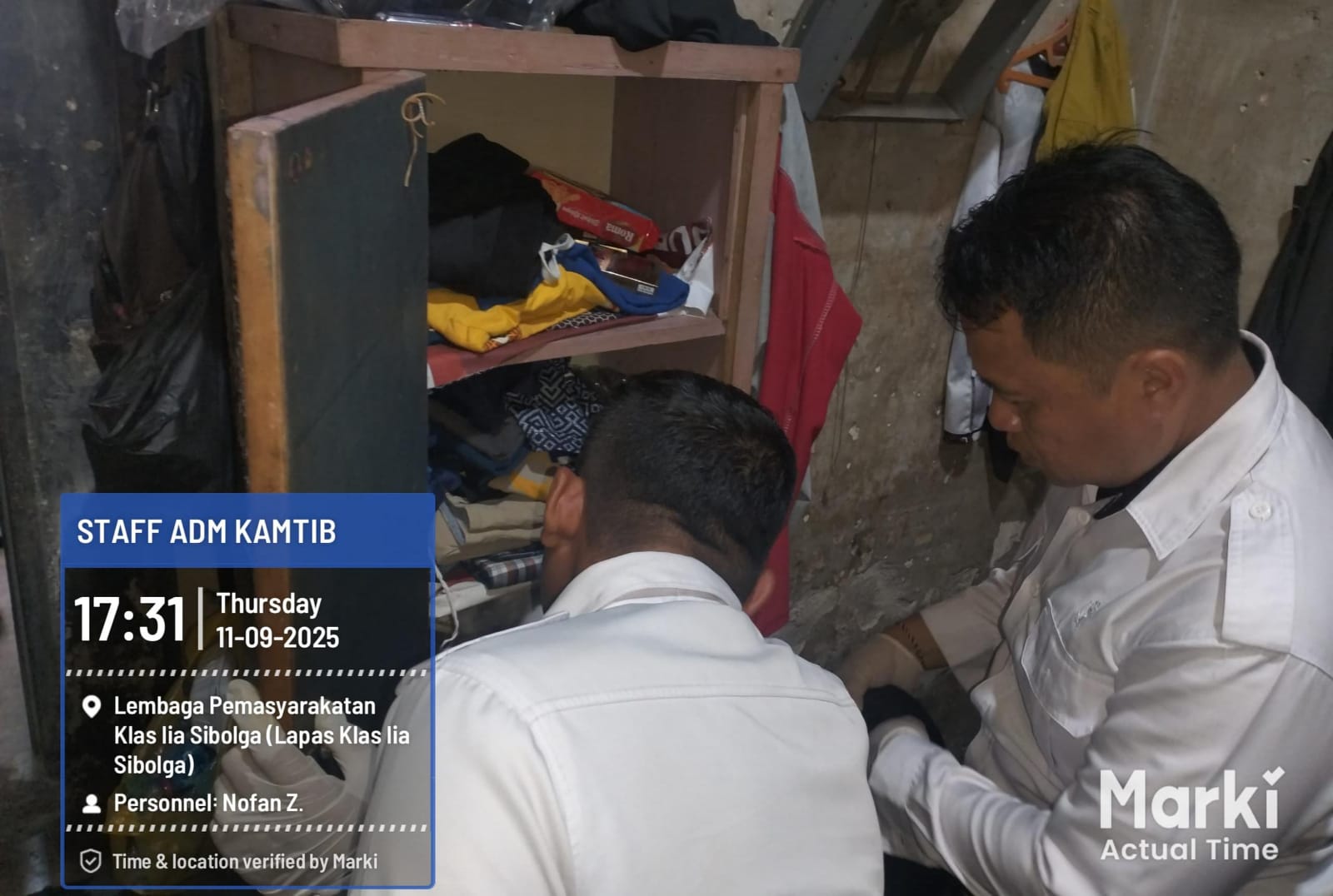 Lapas Kelas IIA Sibolga melaksanakan razia kamar hunian warga binaan,Kamis (11/09/2025).Razia dipimpin Ka. KPLP Ibnu Taqwim bersama jajaran pengamanan.